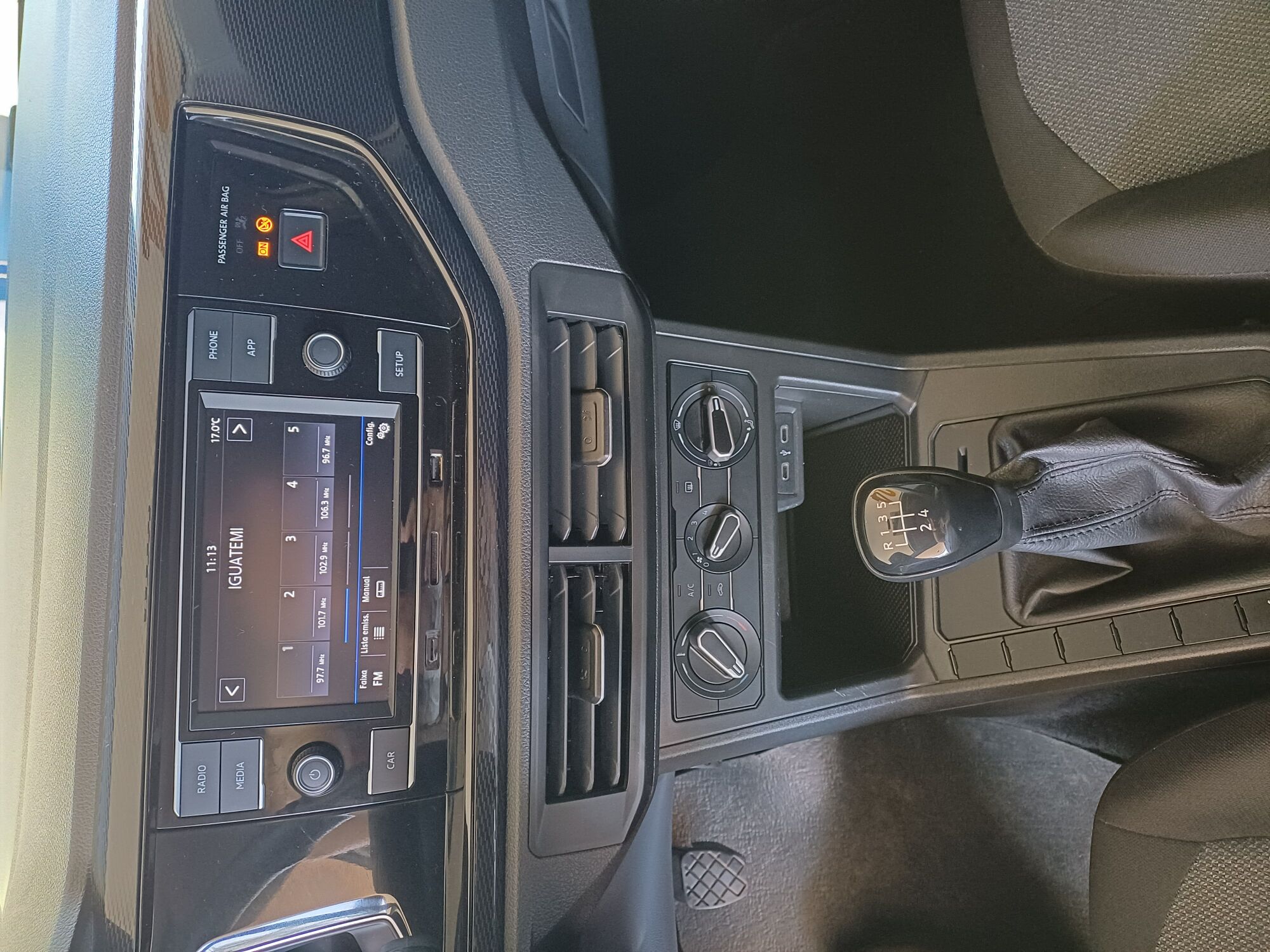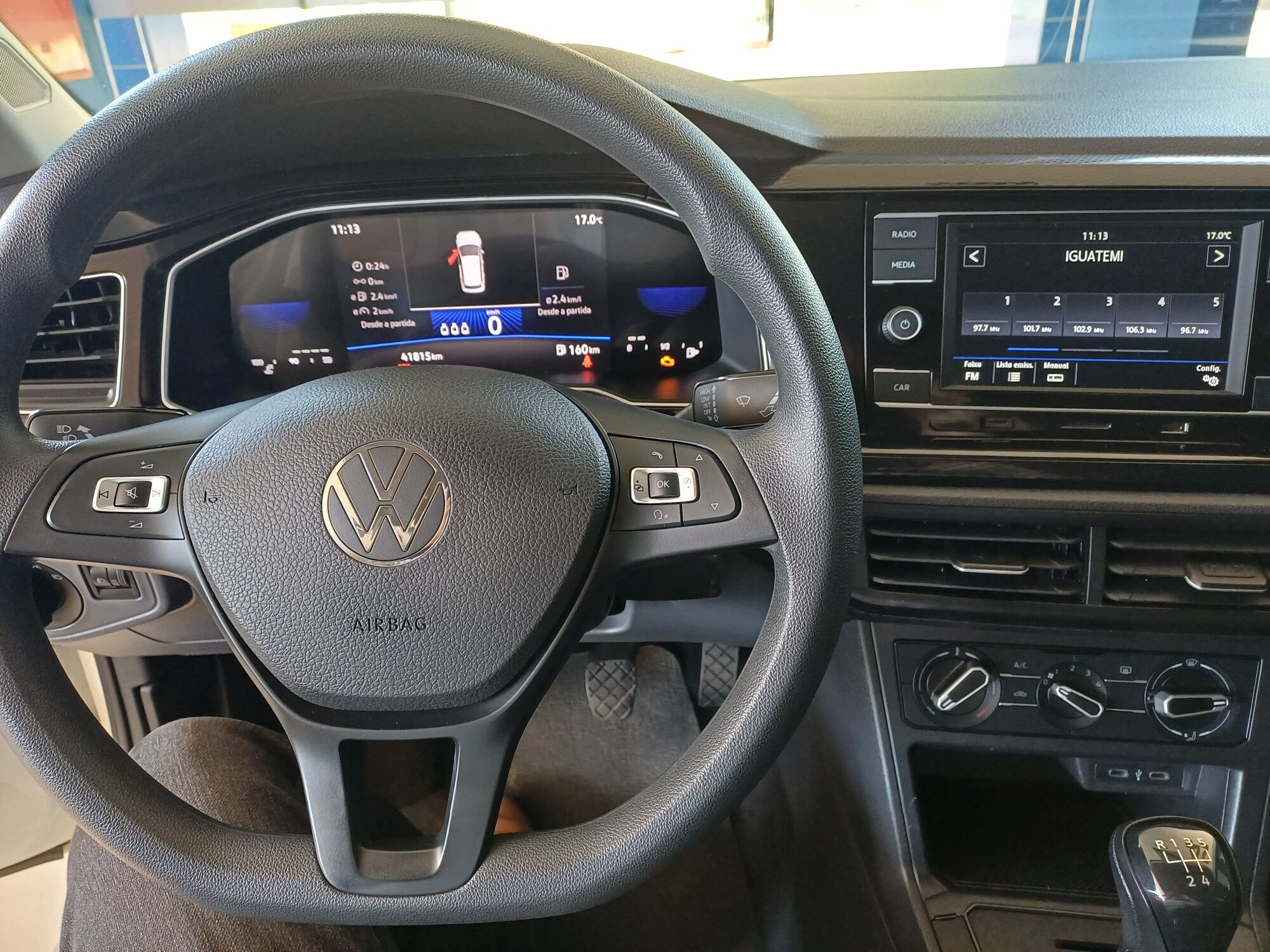 Volante com comandos do rádio